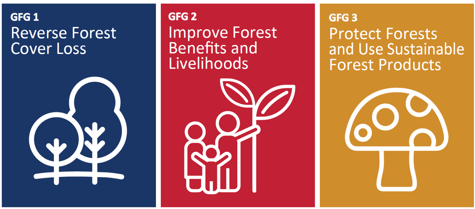 Inti dari Rencana Strategis adalah enam Tujuan Hutan Global (Global Forest Goals/ GFGs) dan 26 target terkait yang bersifat sukarela dan universal. Enam Tujuan Hutan Global yang secara langsung mendukung Tujuan Pembangunan Berkelanjutan PBB, mencakup:[xi]